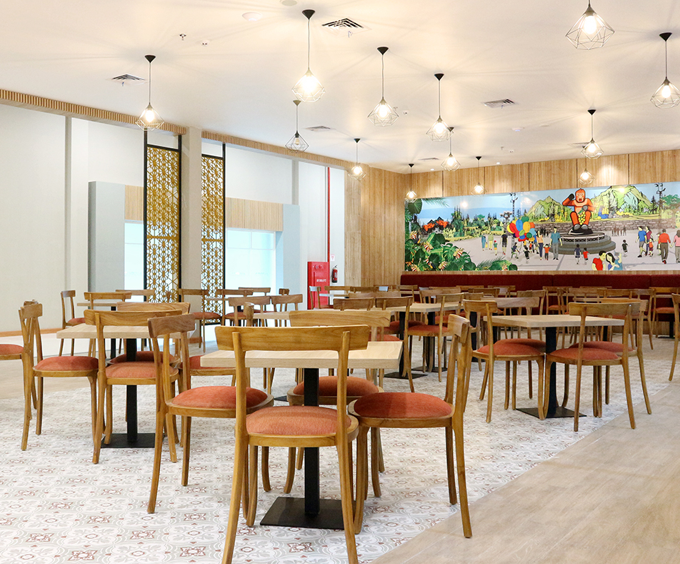 A warm and inviting dining area serving a selection of dishes and refreshing beverages. A comfortable place to enjoy meals, relax, or gather with friends and colleagues.