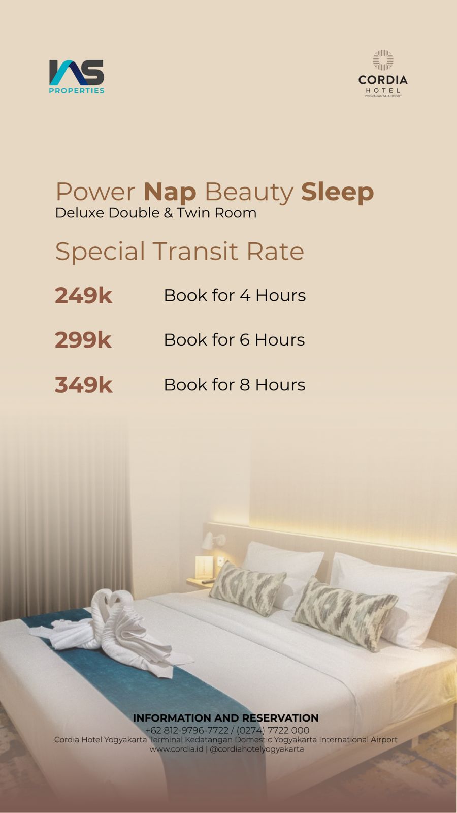 Cordia Hotel Surabaya is your quiet oasis amidst the hustle of the airport. We specialize in turning long layovers into relaxing stays with cozy rooms and warm hospitality.